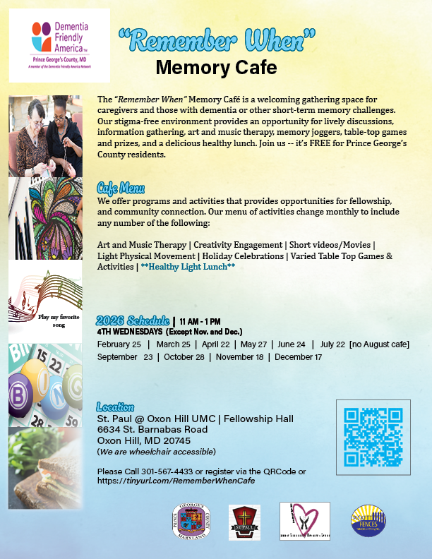 On the fourth Wednesday monthly, the St, Paul Fellowship Hall becomes a lively, welcoming and fun place for caregivers and those with cognitive or memory challenges to meet and enjoy activities and a delicious light mean.